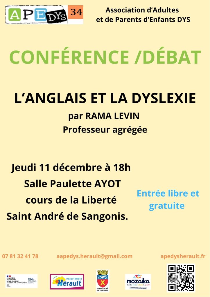 Une intervention très interactive avec le public.Les personnes sont amenées à réfléchir sur plusieurs questions et à donner leurs avis.Pourquoi la langue anglaise est difficile pour tous les français ?En quoi et pourquoi l’anglais est incontournable ?Que se passe-t-il pour un enfant dyslexique ?Existe-t-il des soutiens ? et à qui demander de l’aide ?Dans chaque cas Rama apporte des exemples, des compléments d’informations et surtout rassure sur le fait que l’apprentissage de l’anglais est possible.